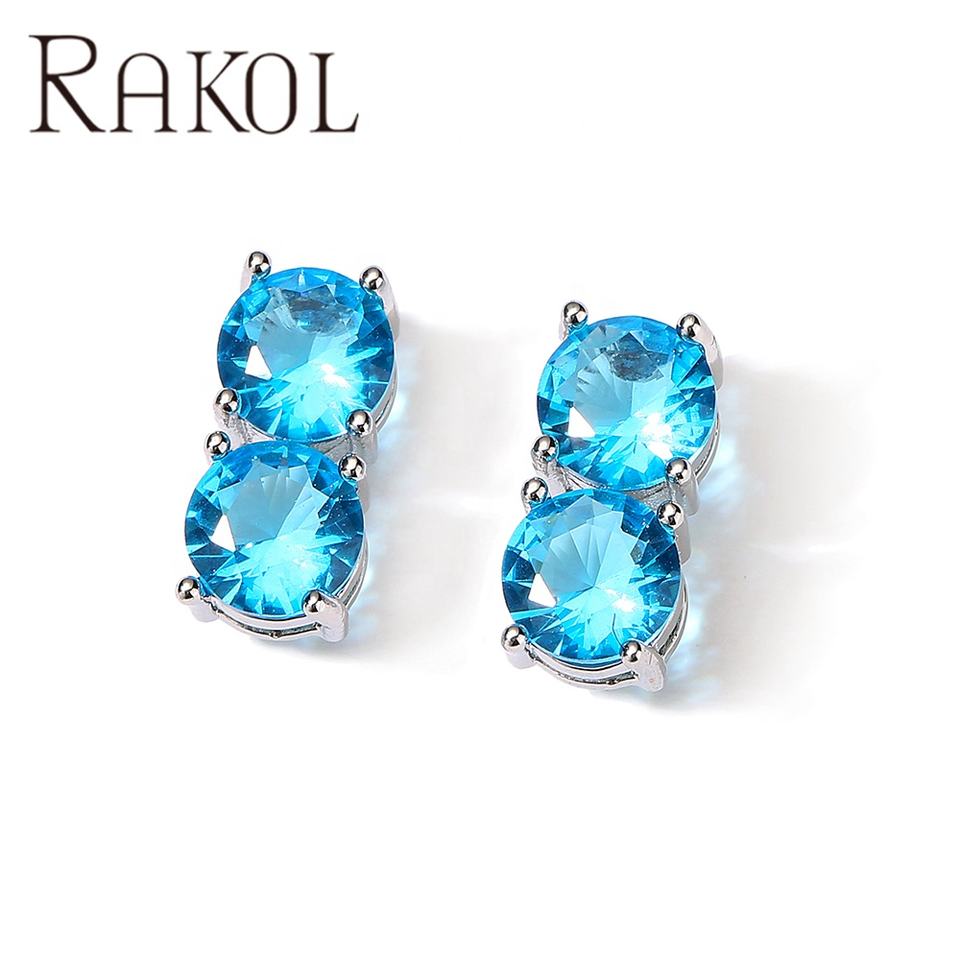 RAKOL EP1200 Fashion Colorful Silver Plated Versatile Korean Style Girls' Bulk Zircon Earrings