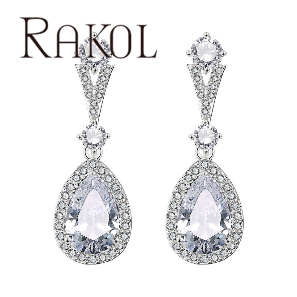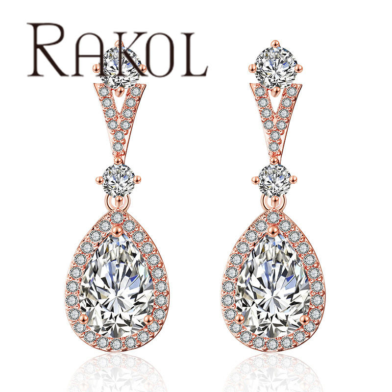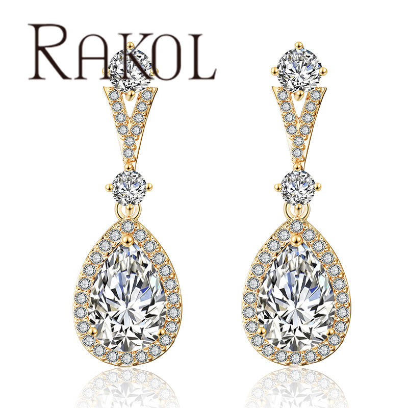 RAKOL EP2182 2024 Fashion Water Drop 3A Micro Insert Real Gold Plated Engagement Earrings