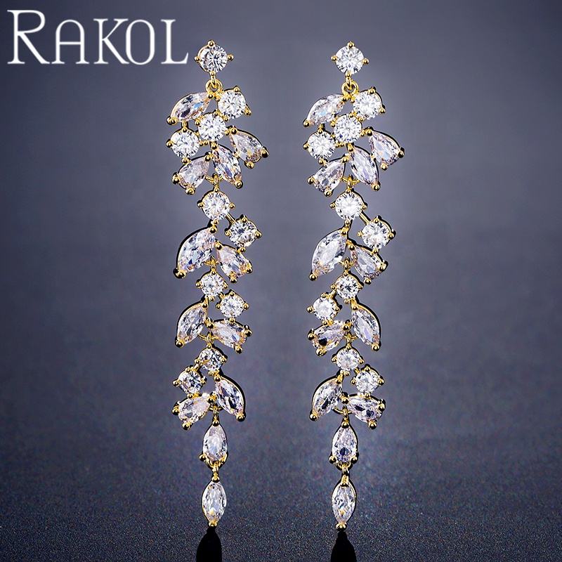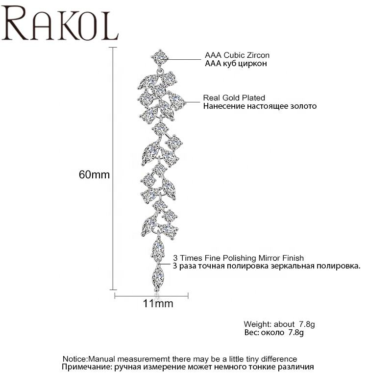 RAKOL EP2232 Luxury Long Drop Gold-Plated Cubic Zirconia Wedding Bride Earrings Women's Jewelry 2025