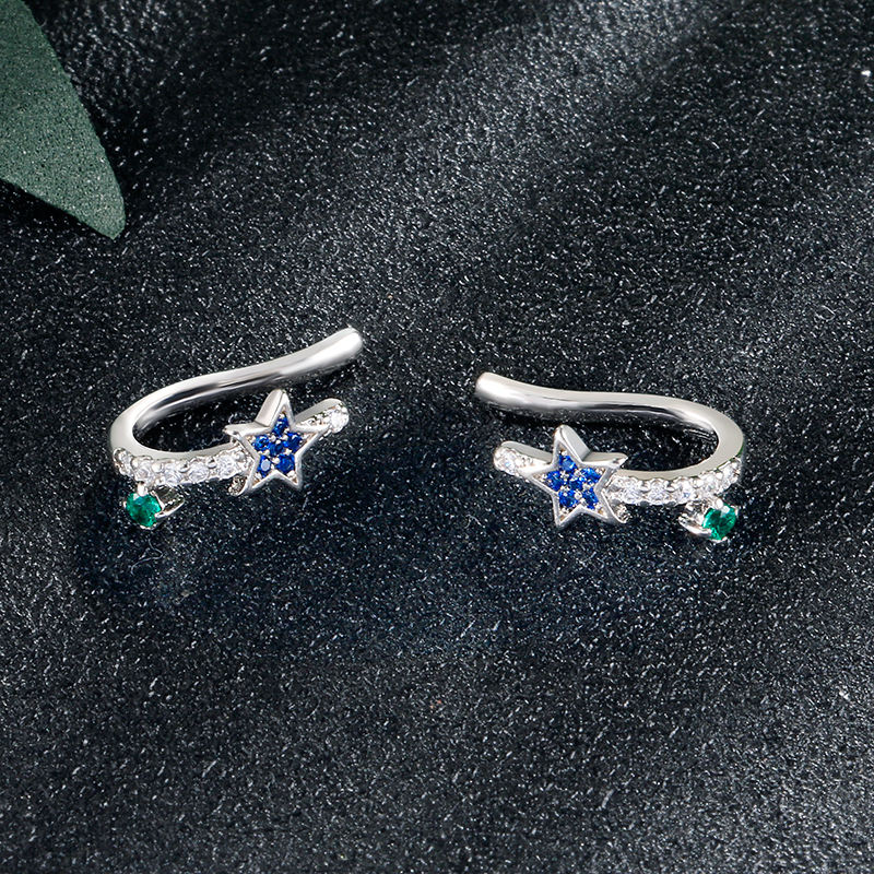 Brand Name:Zircon Inlaid Blue Star Clip Earrings Gold Plated Earrings for Women