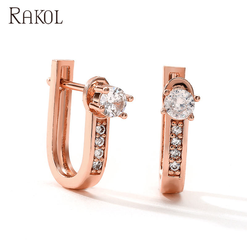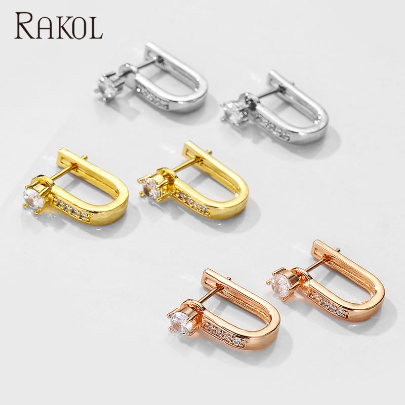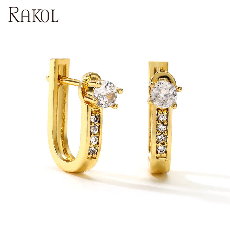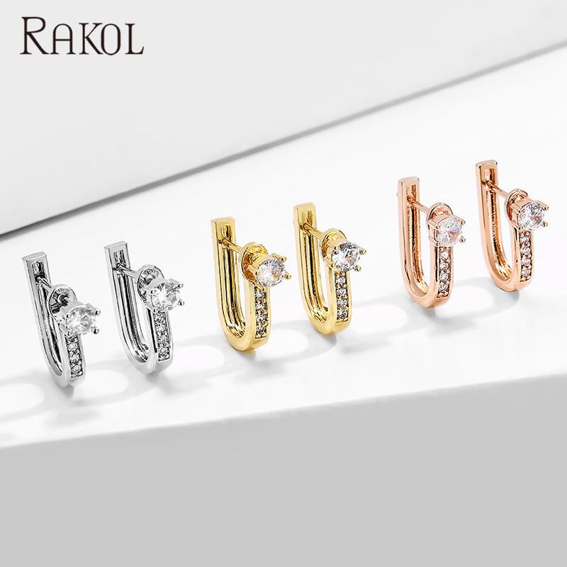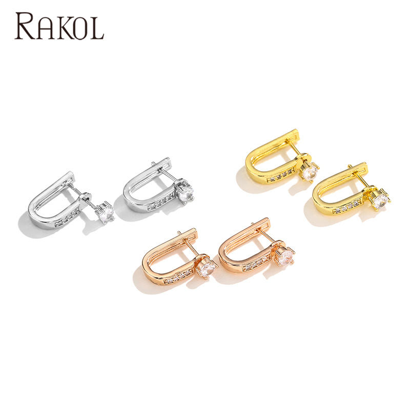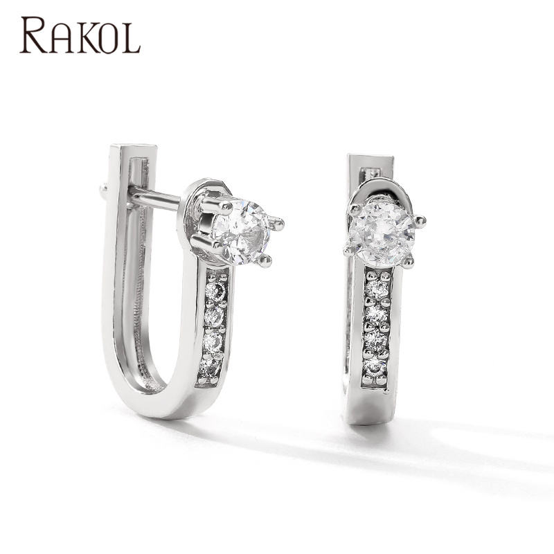 RAKOL EP2545 Accessories Sterling Zircon U-Shaped Silver for Women Girls Fashion Earrings