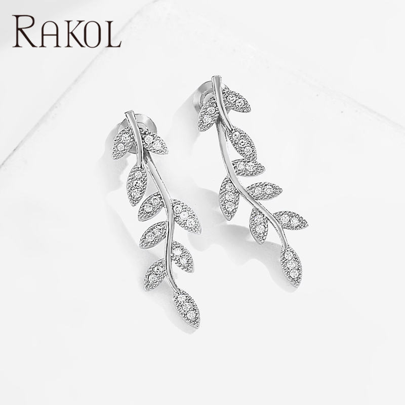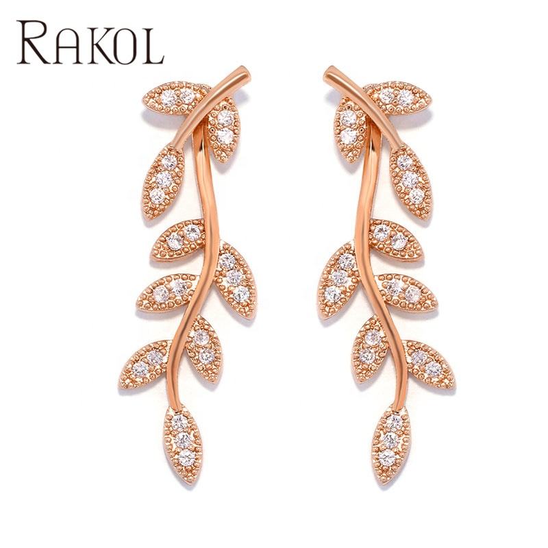 RAKOL EP2577 2022 New Design 18k Gold Plated Leaf Bride Wedding Zircon Crystal Inlaid Earrings for Women