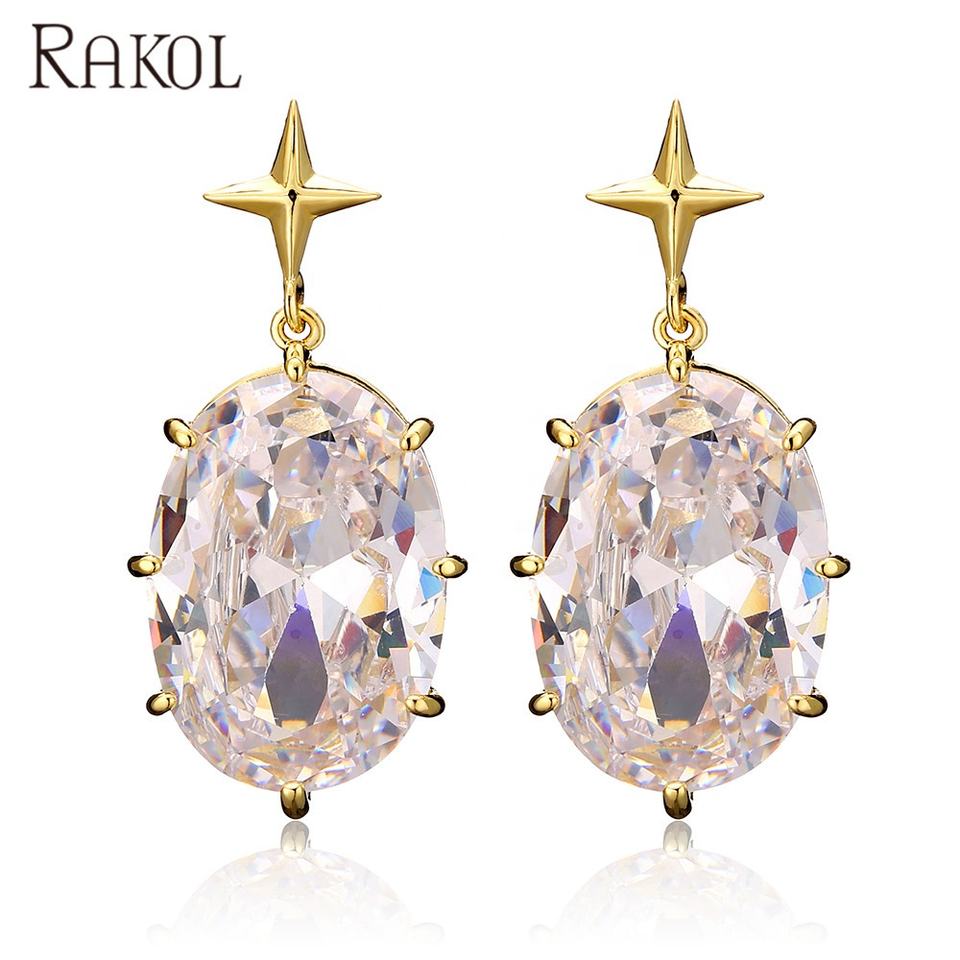 RAKOL EP2738 Large Crystal CZ 2021 New Year Elegant Pendant Real Gold Jewelry Pageant Earrings