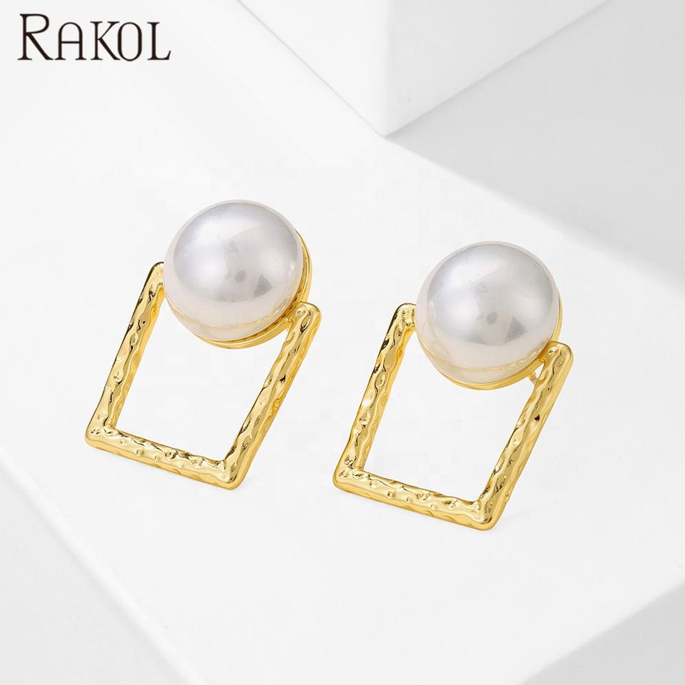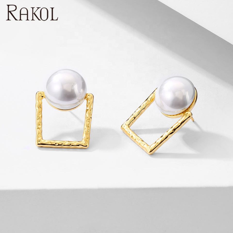RAKOL EP2797 Small Simple Gold Stud Pearl Earrings Fancy Jewelry