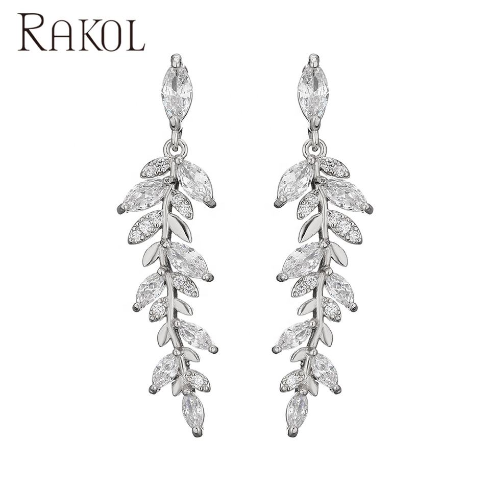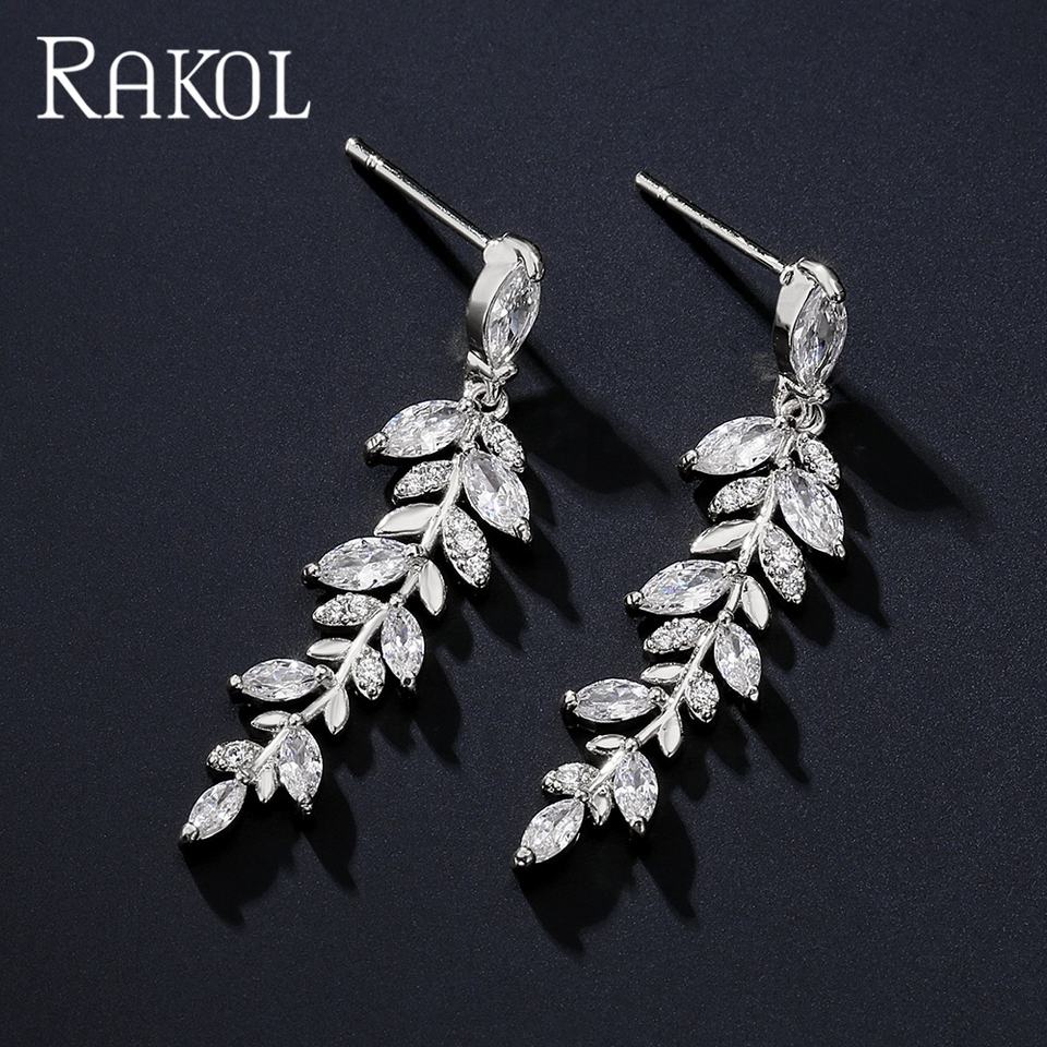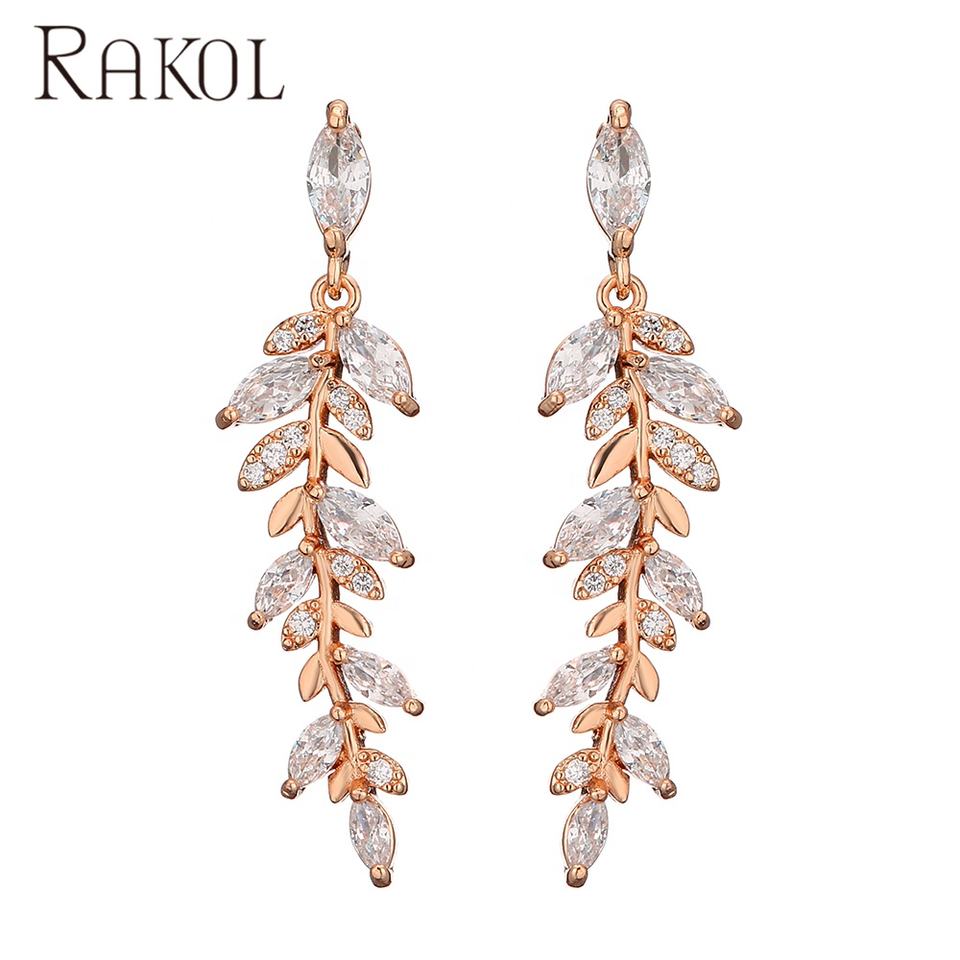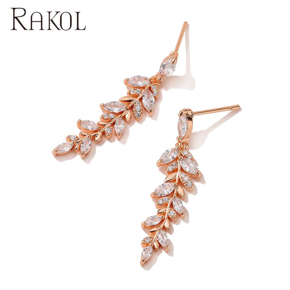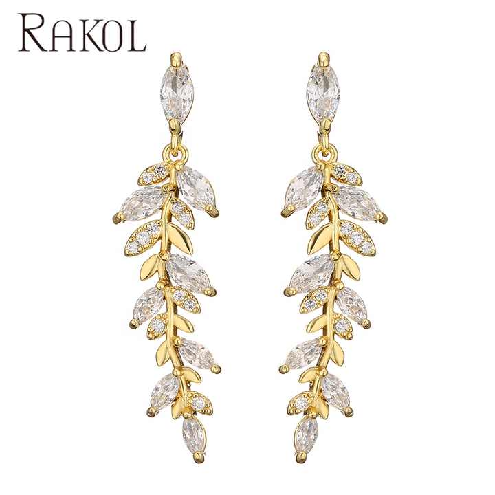 RAKOL EP2923 Korean Leaf-Shaped Cubic Zirconia Wedding Fashion Jewelry Gold-Plated Statement Earrings