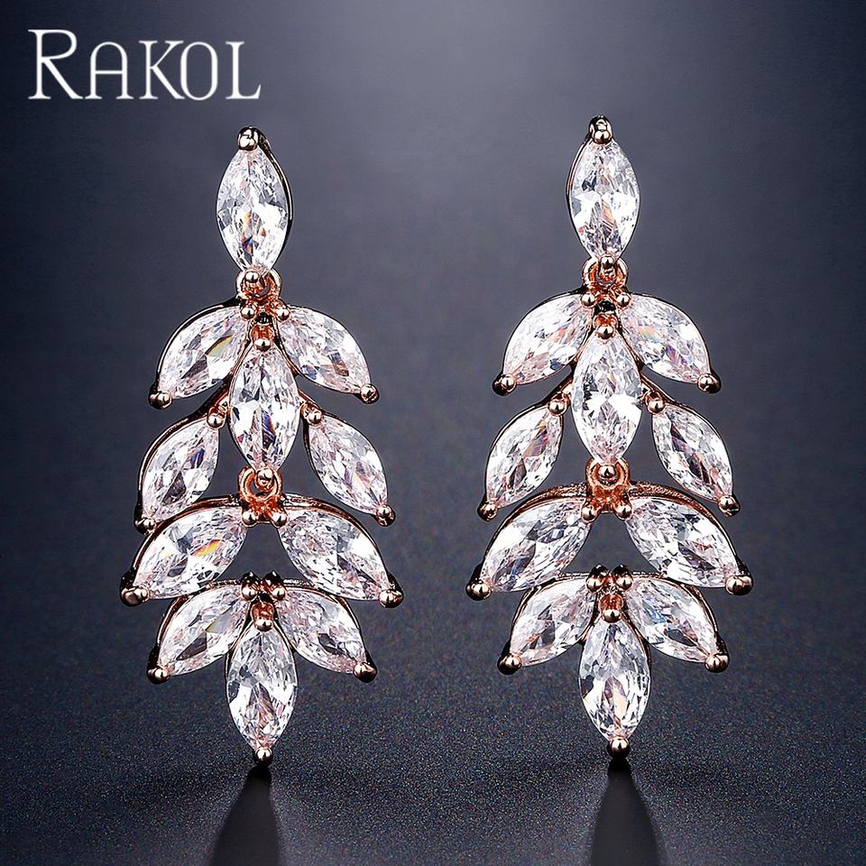 RAKOL EP2963 Luxury Cubic Zirconia Pendant Gold-Plated Wedding Jewelry for Women Bridal Statement Earrings