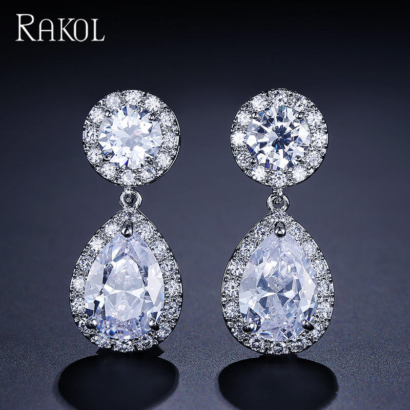RAKOL EP501 Wedding Zircon Crystal Drop Earrings 1
