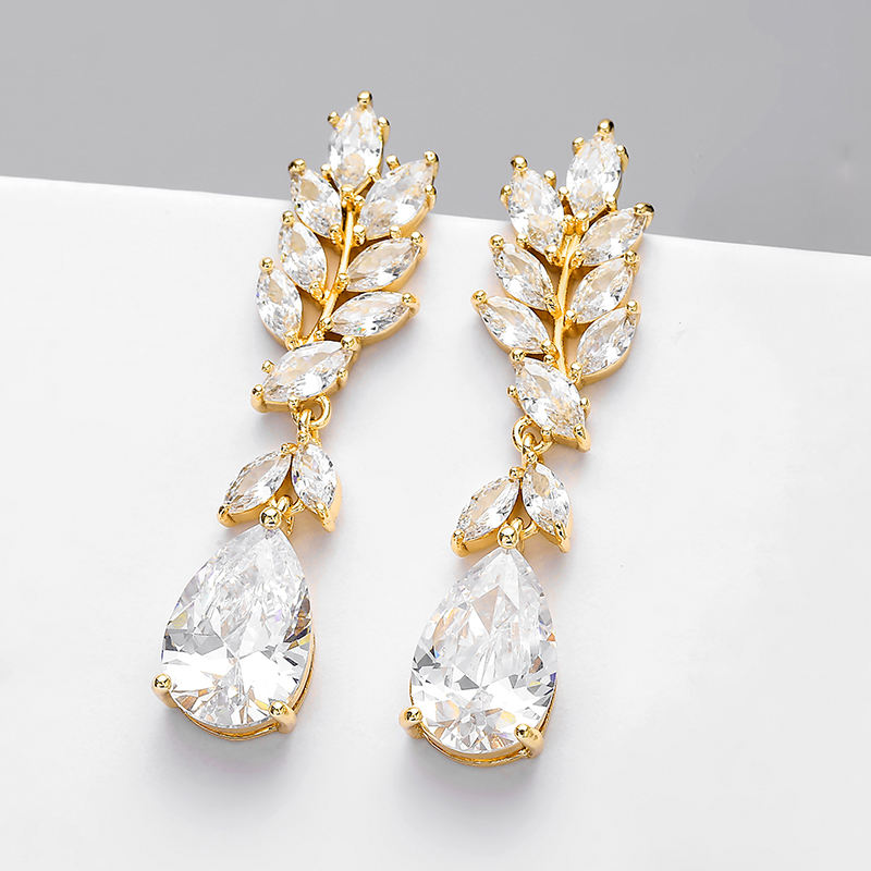RAKOL EP5099 Bulk Wholesale Luxury Cubic Zircon Long Drop Earrings 18k Gold Crystal Earrings Jewelry Women