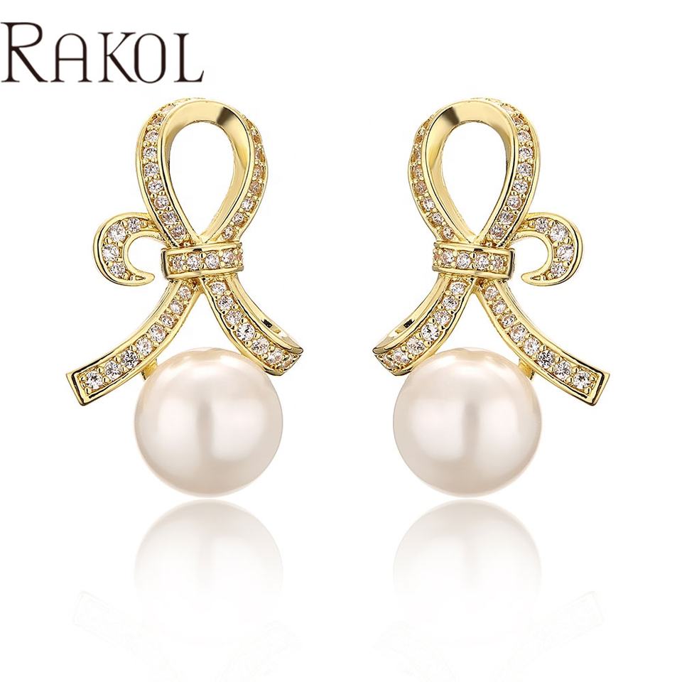 name or words:RAKOL EP5307 Generous Fashion Bow Zircon Jewelry Pearl Earrings