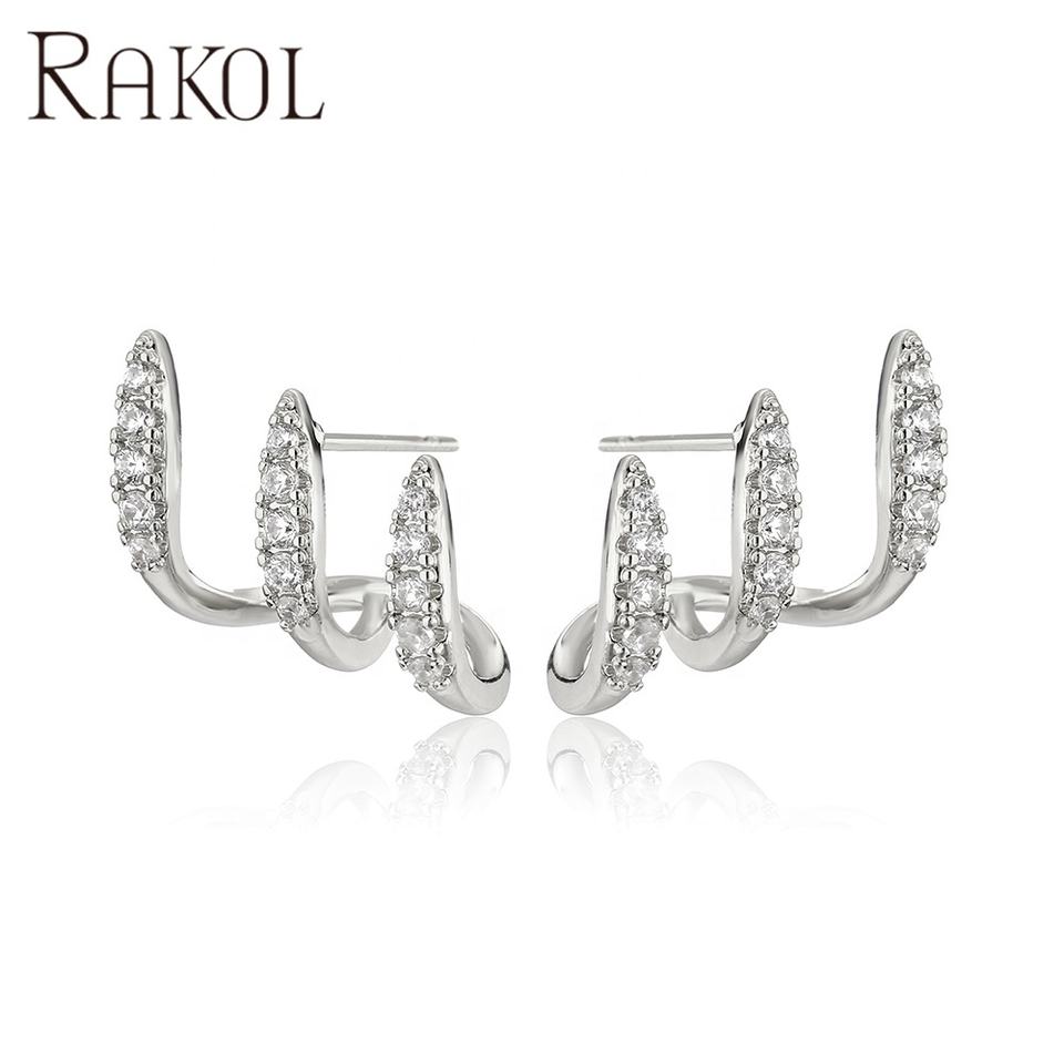 RAKOL EP5375 2022 Fashion for Women Gold Cubic Zirconia Clip Metal Cuff Earrings Jewelry