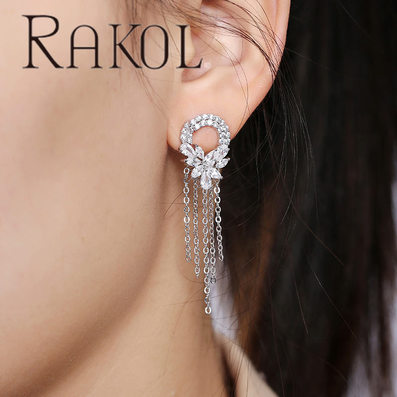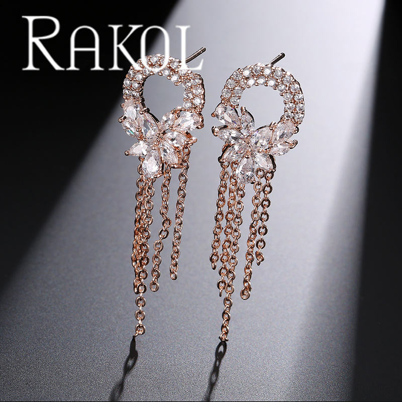 RAKOL EP550 Stud Water Drop Gold Plated Flower Earrings Women Luxury Jewelry