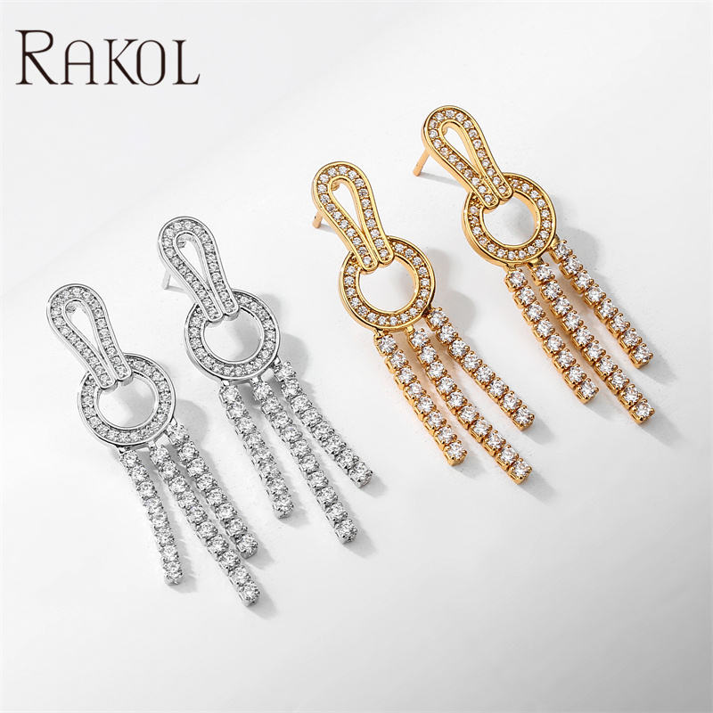 RAKOL EP5501 Arrival Elegant Long Tassel Fashion Jewelry Cubic Zirconia Women's Statement Earrings