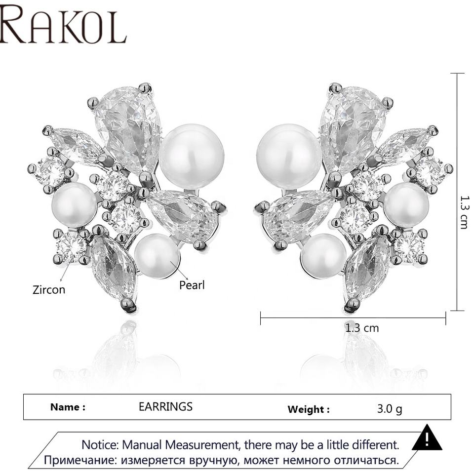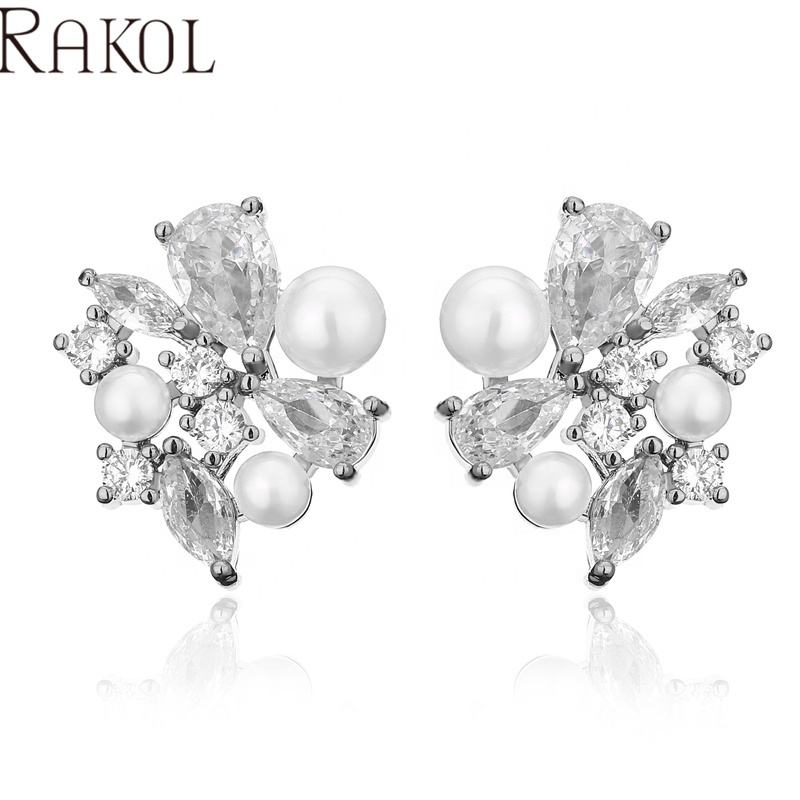 RAKOL EP5552 Cubic Zirconia Fashion Jewelry for Women Small Crystal Silver Gold Plated Pearl Earrings