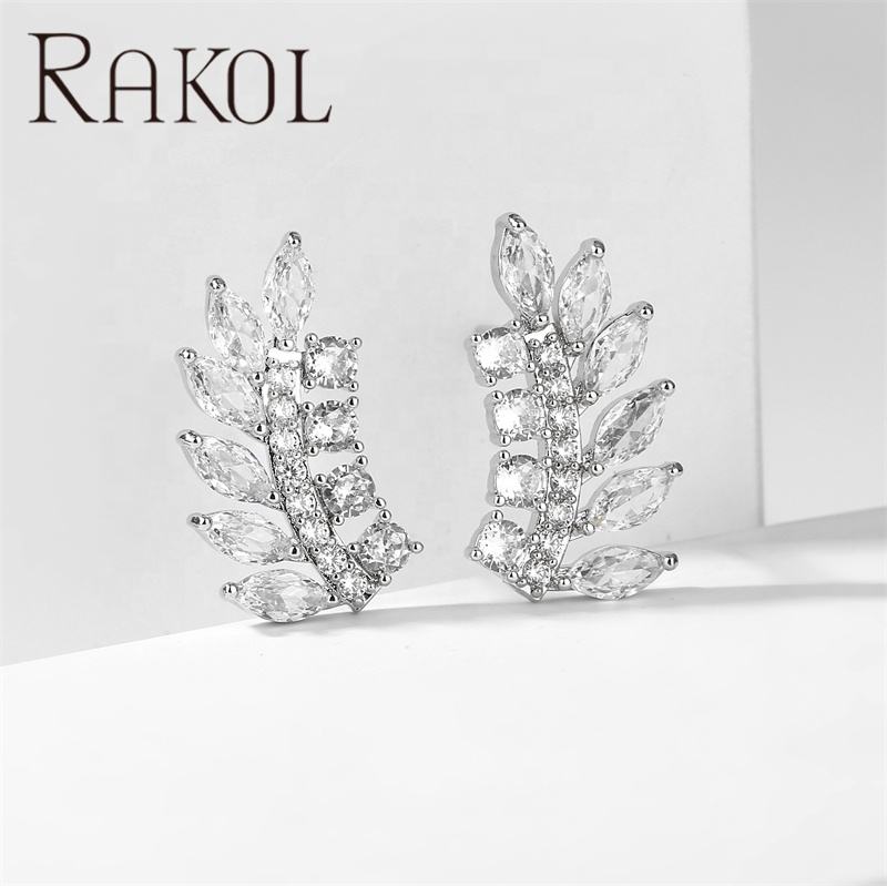 RAKOL EP5657 fashion Jewelry Colorful Green Zircon Leaf Shape Crystal Bridal Wedding Stud Earrings