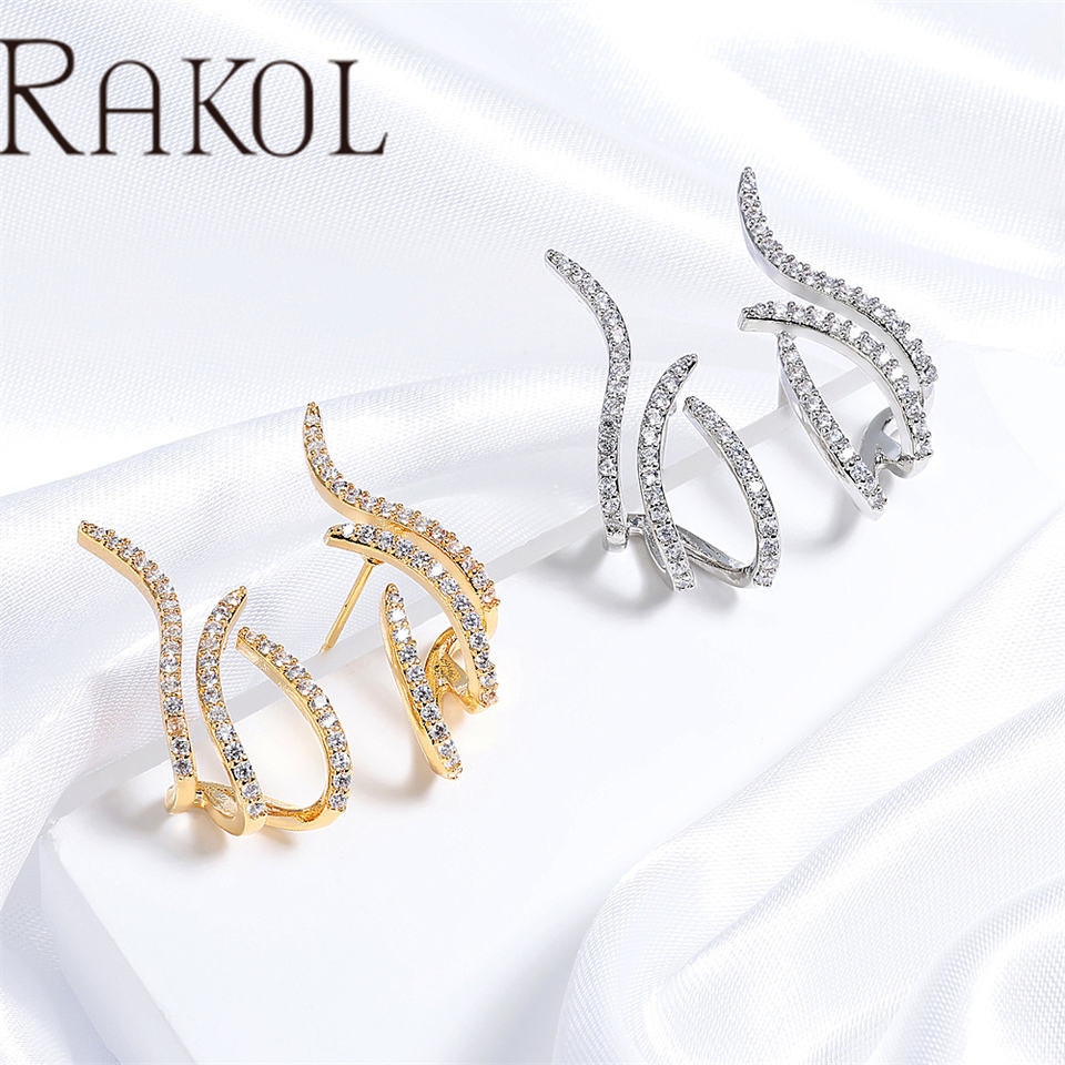 RAKOL EP5825 2024 Silver Plated Fashion Jewelry Three-Claw White Irregular Stud Earrings
