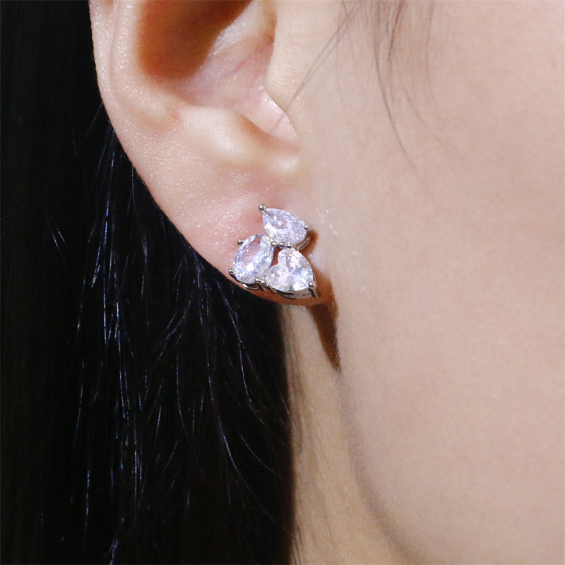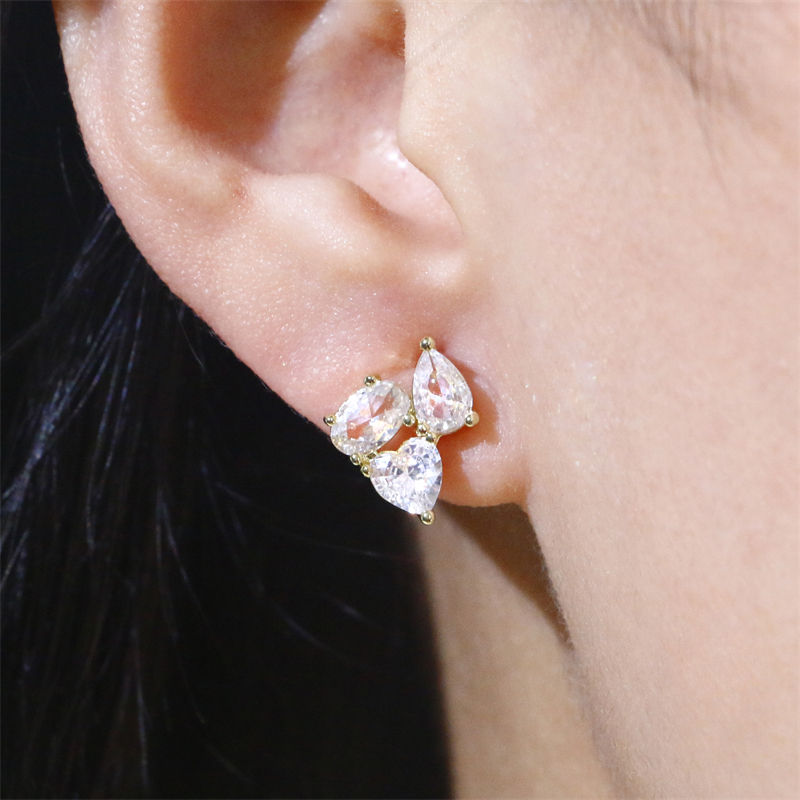 RAKOL EP6022 Gold-Plated 3-Ball Zircon Pointed Set Design Heart-Shaped Drop Oval Cut Transparent Cubic Zirconia Stud Earrings