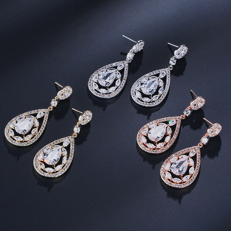 RAKOL EP673 Classic White Rose gold Micro Inlaid Zirconia Accessories Wedding CZ Earrings