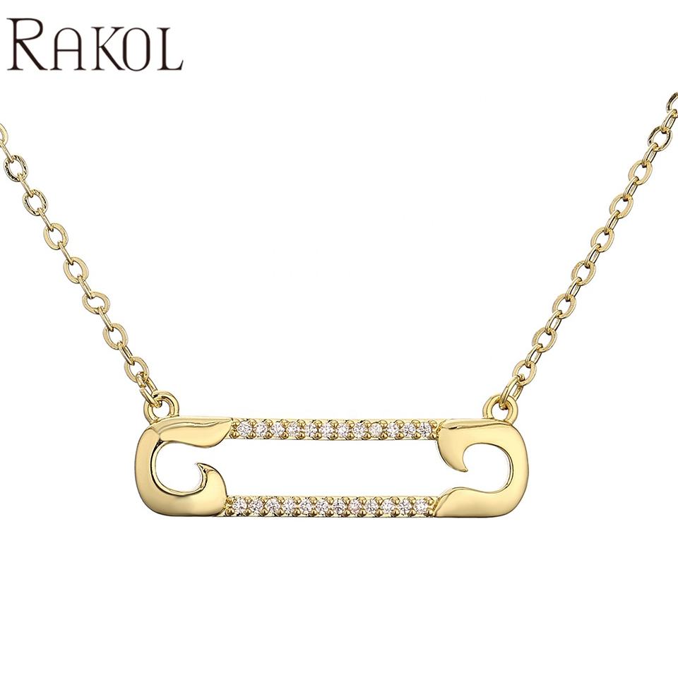 RAKOL NP5075 fashion Shiny Clip Chain Cute Pendant Gold Plated Stainless Steel Women Jewelry Necklace
