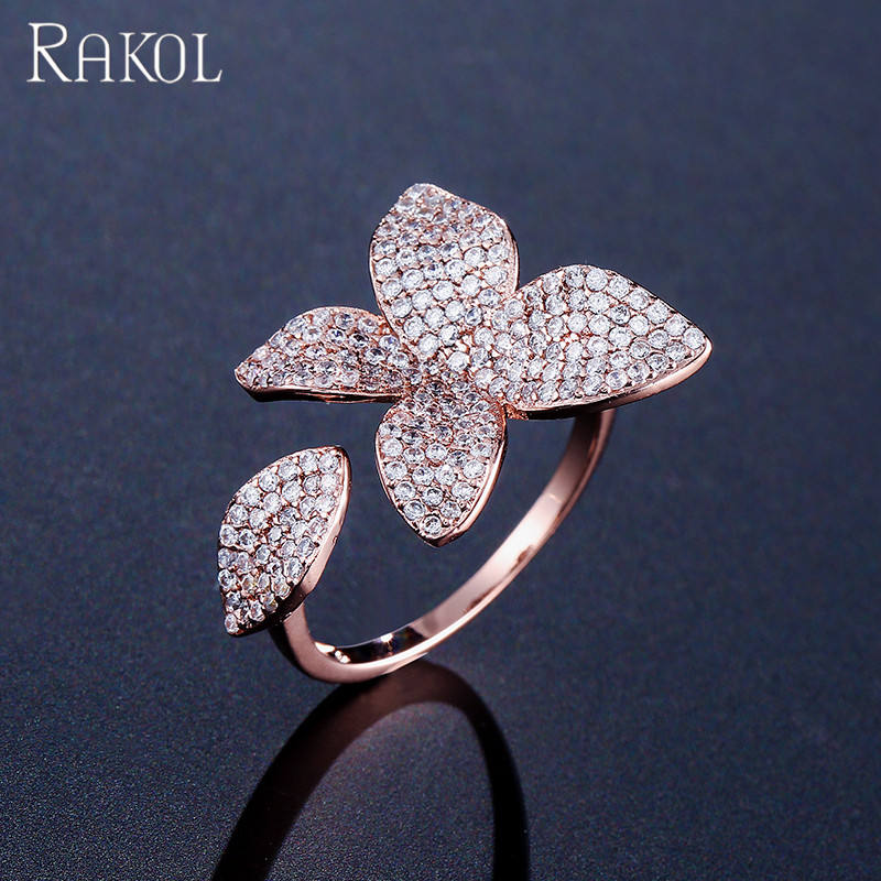 RAKOL RP2034 Wedding Bride Jewelry Unique Full Inlaid Zircon Flower Shape Adjustable Copper Engagement Open Ring