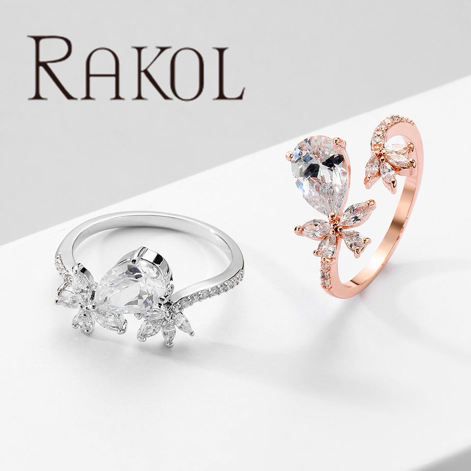 RAKOL RP5010 Adjustable Gold-Plated Fashion Classic Water Drop Zircon Ring Women's Jewelry