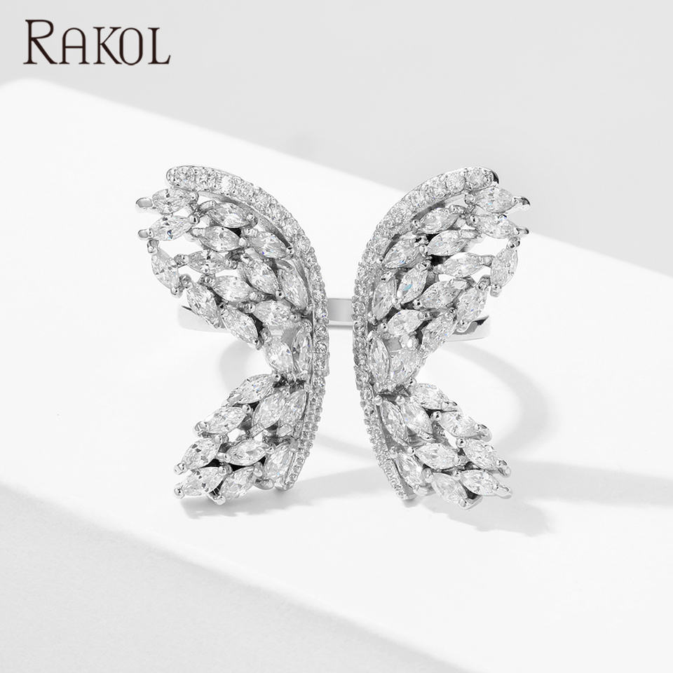 RAKOL RP5023 Jewelry for Women Open Adjustable Micro Insert Gold Bar Shiny CZ Butterfly Ring