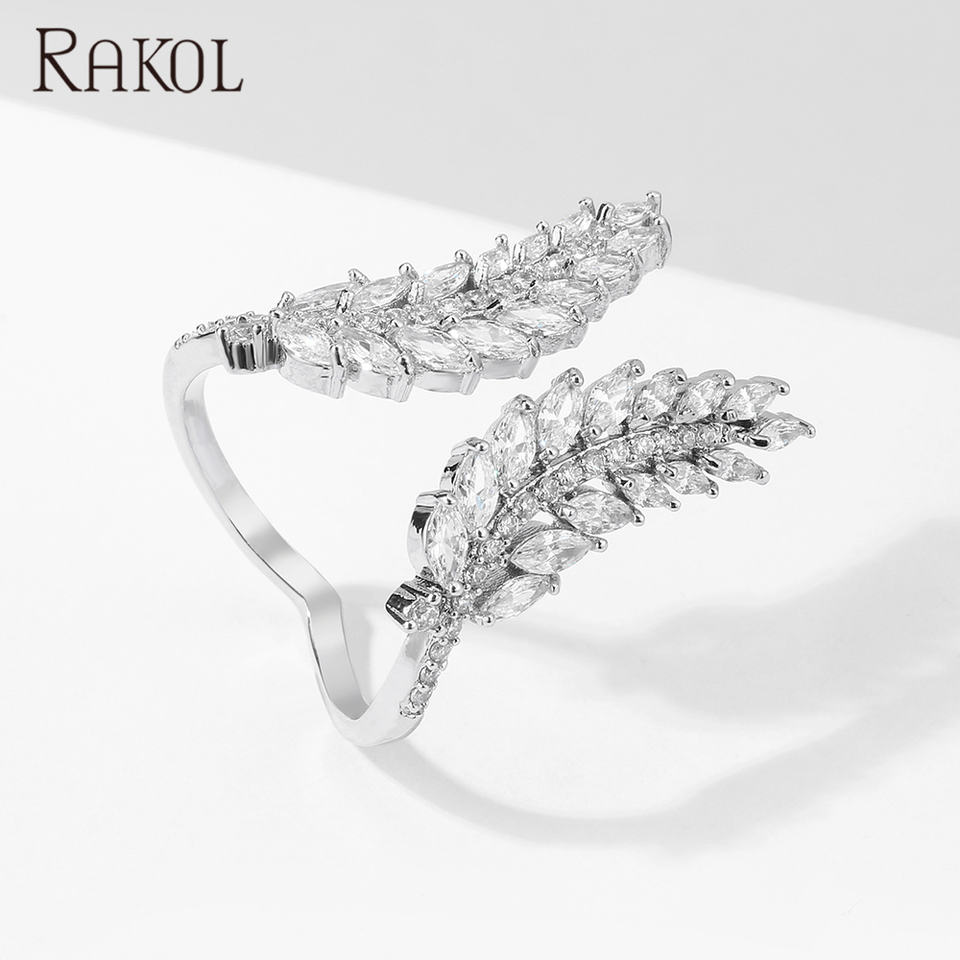 RAKOL RP5027 Luxury High-Quality Micro Pave CZ Zircon Wedding Angel Wing Ring Women's Silver