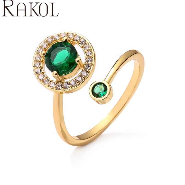 RAKOL RP5315 Design Fashion Jewelry Adjustable Green Zircon Gold-Plated Christmas Gold Ring Women's Gift