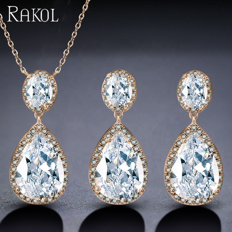 RAKOL SP2005 Chinese Jeweler Classic Water Drop Pendant Cubic Zirconia Necklace Earrings Jewelry Set S2005