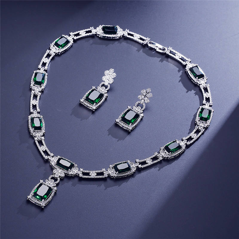 RAKOL SP304 High Quality Silver Electroplated Rectangular Colorful Crystal Stone Pendant Necklace Two-piece Set W