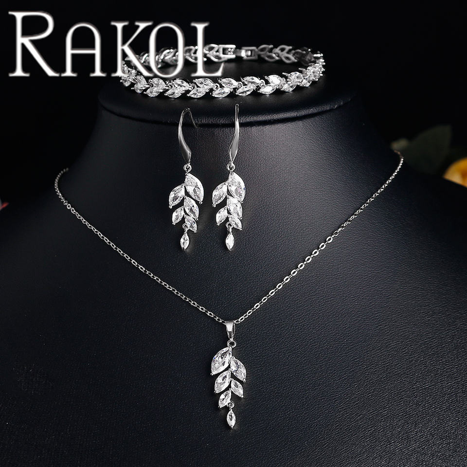 Product Name:RAKOL Leaf Zircon Pendant Necklace Fashi