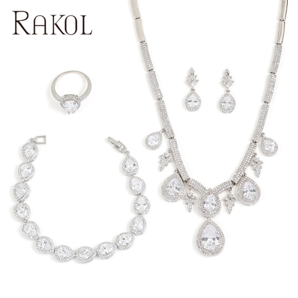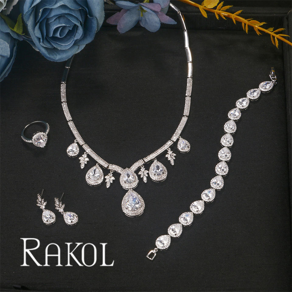 RAKOL SP3569 Wedding Luxury Zircon Bridal Set 2023 Necklace Earrings Bracelet Ring Dubai High-end Jewelry for Women