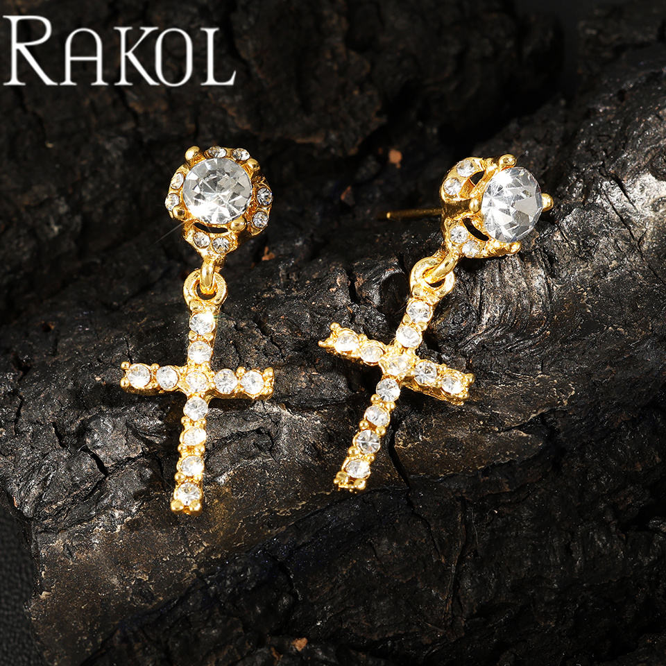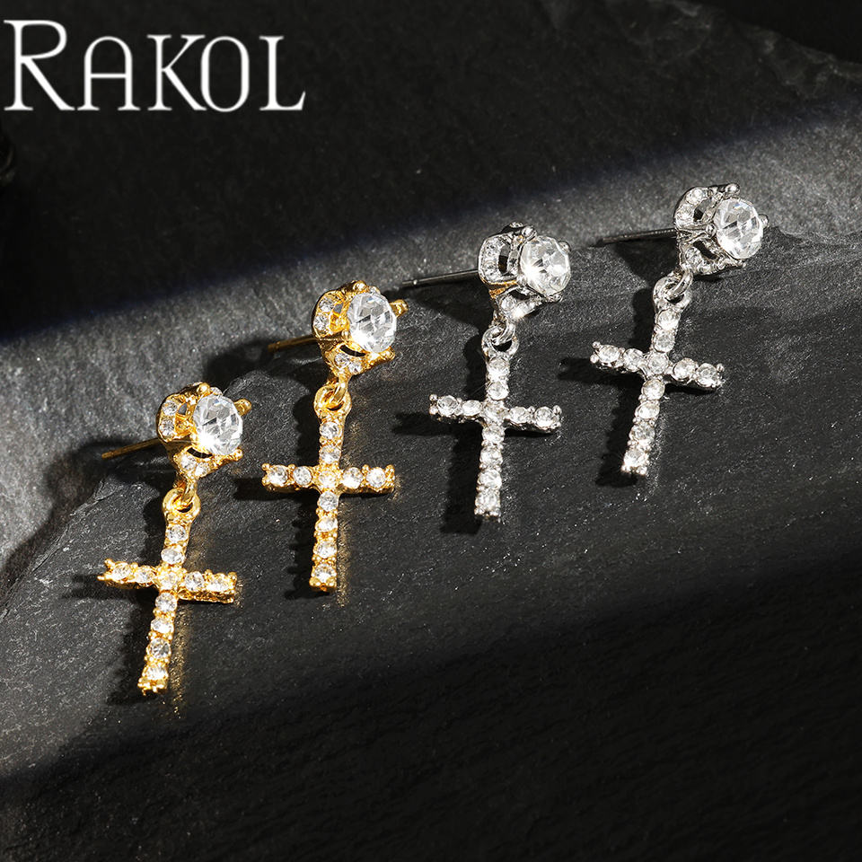 RAKOL ZPE1938 Cross-border Hot Hip-hop Popular Full Cross Micro Inlaid Zircon Stud Earrings