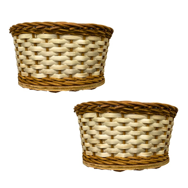 RATTAN BREAD STORAGE BASKET Serving & Display Tray Natural Wicker with Wooden Base