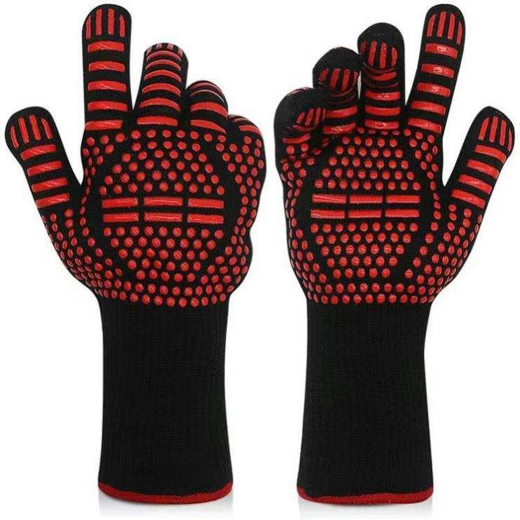 RAYBIN Customized Printed Reversible Fireproof Canvas Heat Resistant BBQ Gloves for Grill Premium