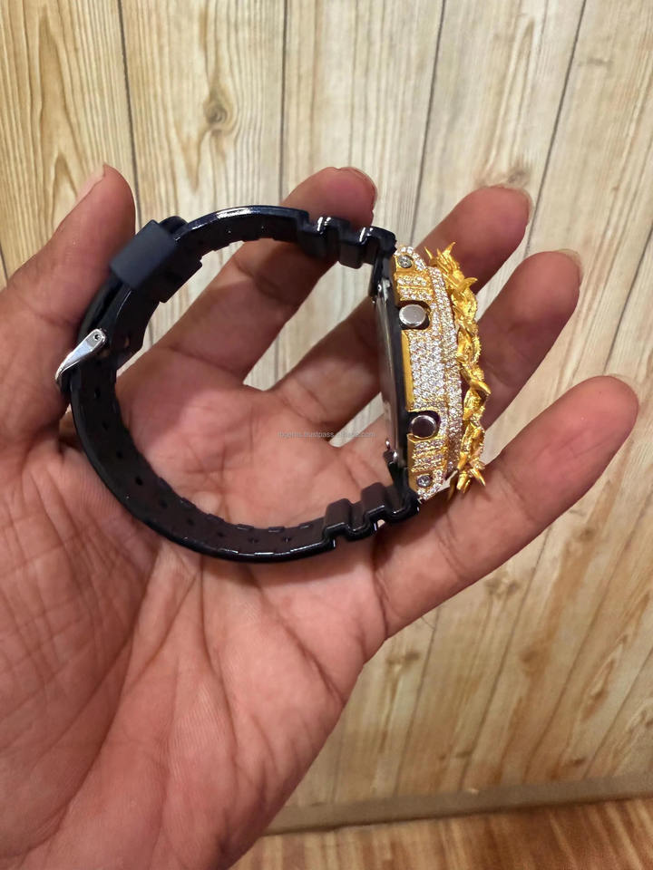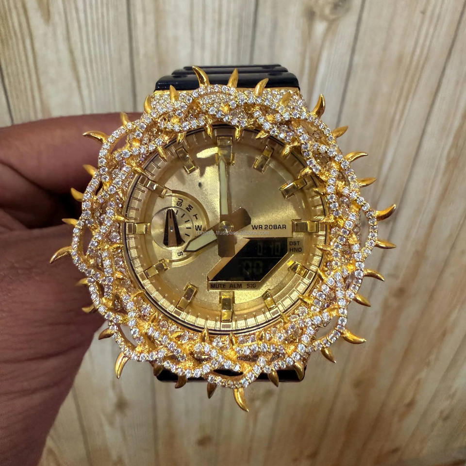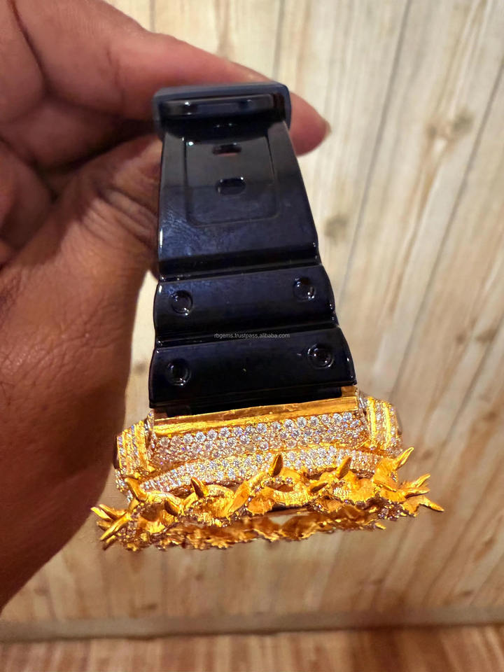 RB Gems Luxury Custom Men's Automatic Quartz Watch Limited Edition VVS Moissanite Glass Dial Gold Black Stainless Steel Band