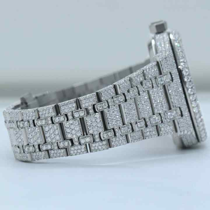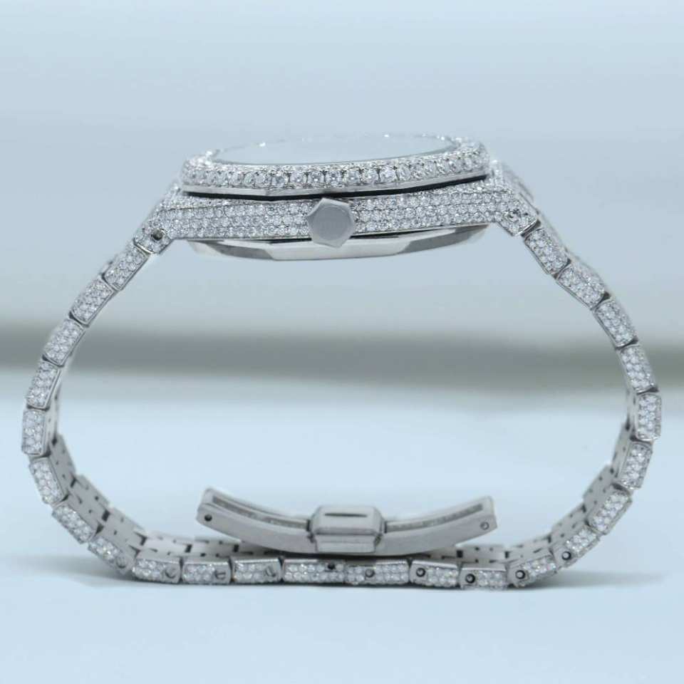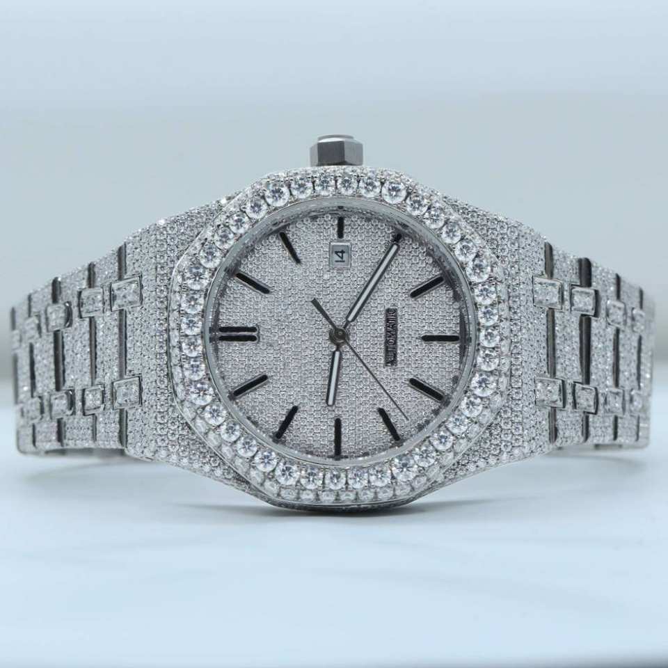 RB Gems Men's Antique Luxury Business Style ETA Automatic Mechanical Watch VVS Moissanite Analog Stainless Steel Moon Phase