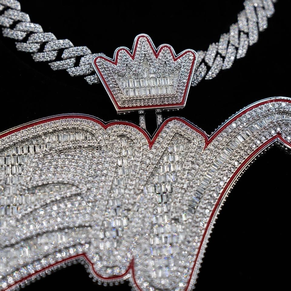 RB Gems VVS Moissanite Diamond Initial Logo Pendant Custom 925 Sterling Silver Hip Hop Jewelry with Rose Gold Finish