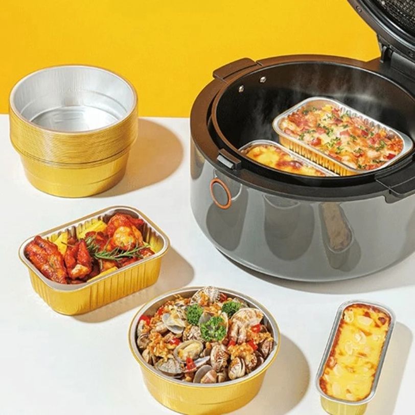 RE3G Disposable Aluminum Foil Container Gold Lunch Box Rectangular Tin Foil Dishes Grill Pan Aluminum Foil Container With Lid