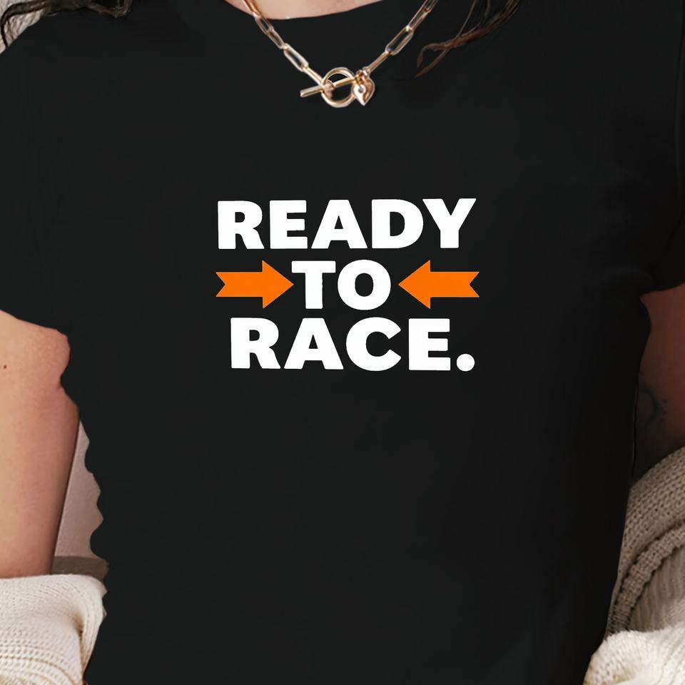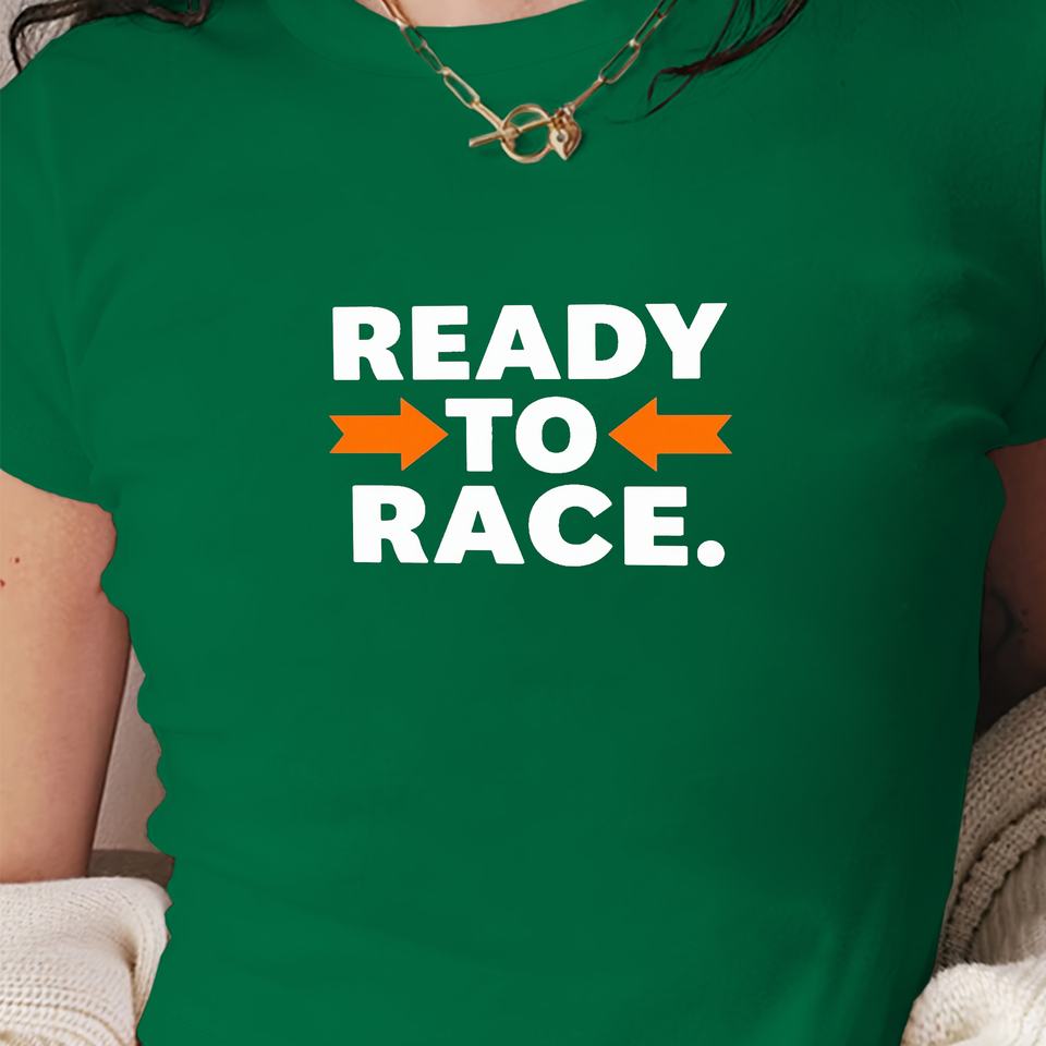 Ready to Race Women's Slim Fit Short T-Shirt Y2K Fashion with Printed Knitted Fabric