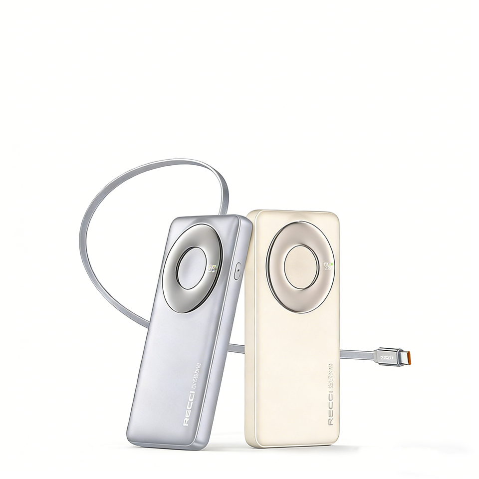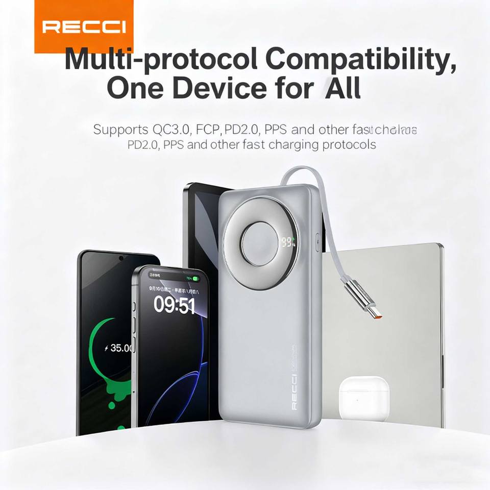 RECCI RPB-P58 10000mAh 22.5W Fast Charging Power Bank with Built-in Retractable Cable Portable Charger