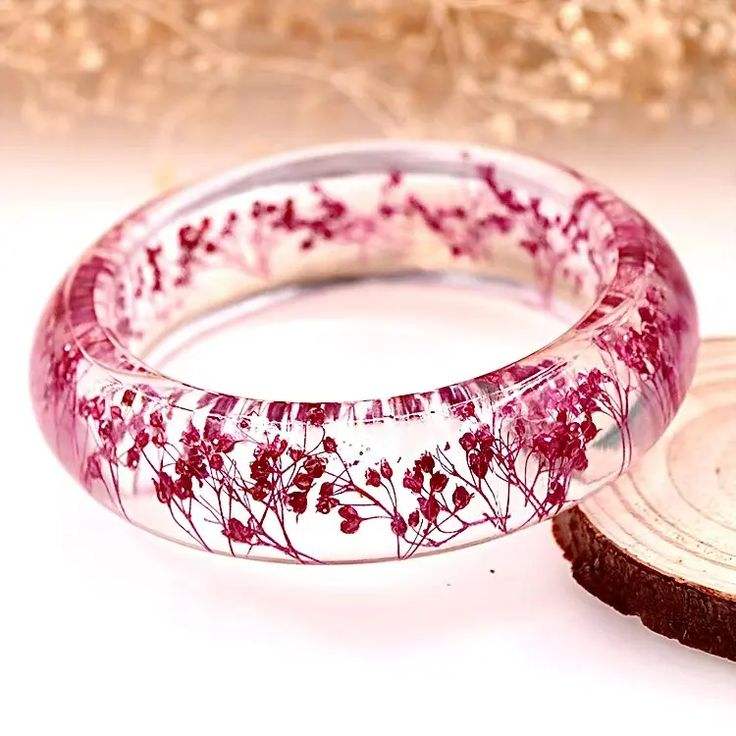 Resin Hand-painted Floral Pattern Custom Size Opening Bangle for Women Girls Clear Exquisite Valentine's Day Mother's Day