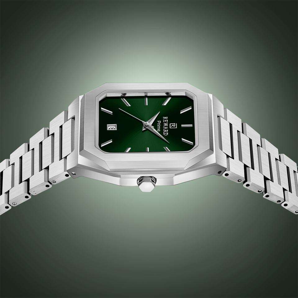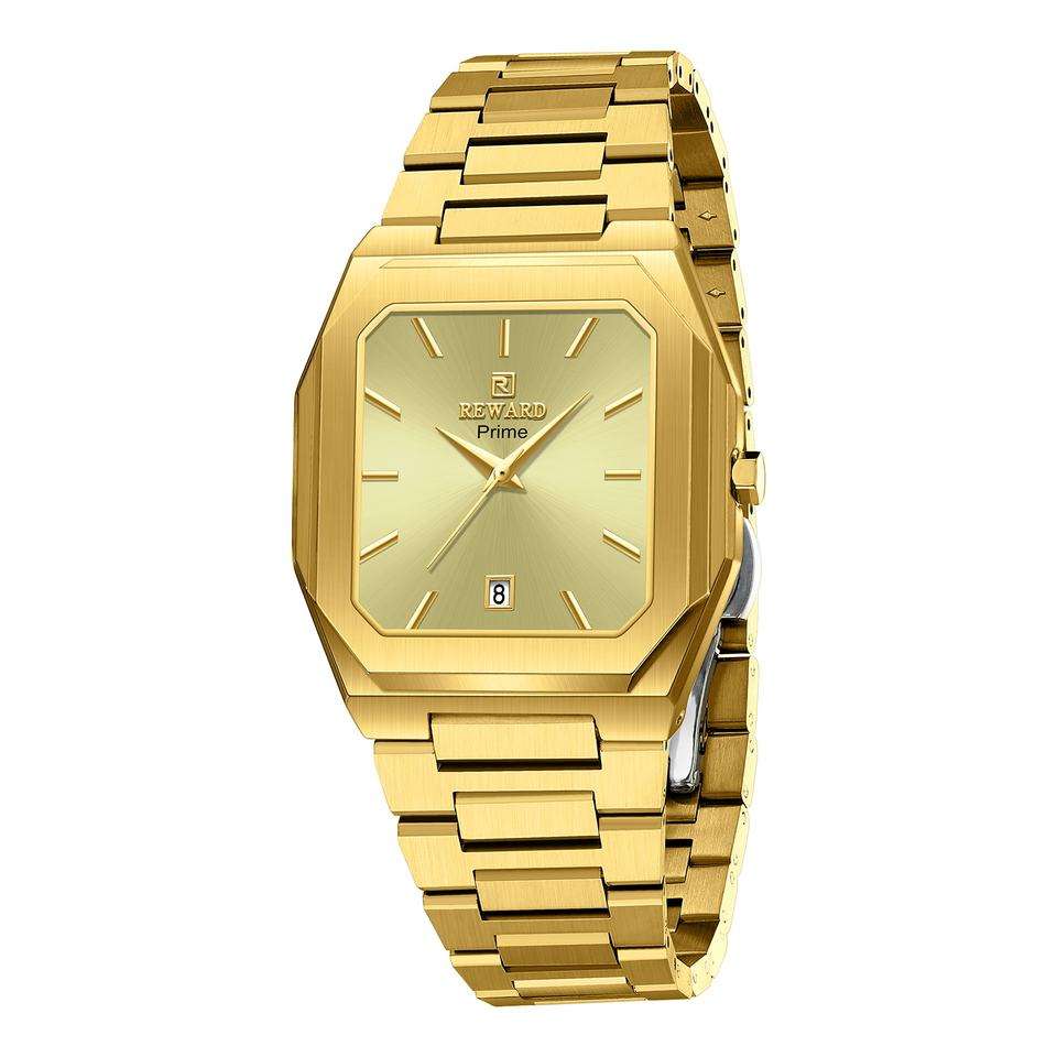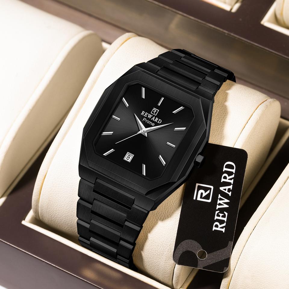 REWARD 61315 Fashionable Men Quartz Watch Minimalist Business Square Case Automatic Date Stainless Steel Strap Watches for Man