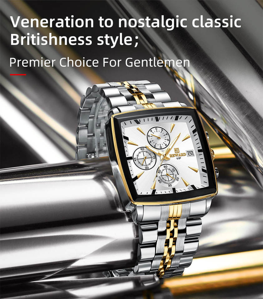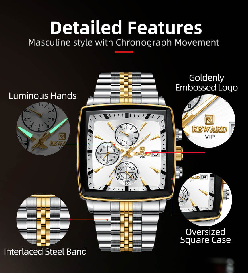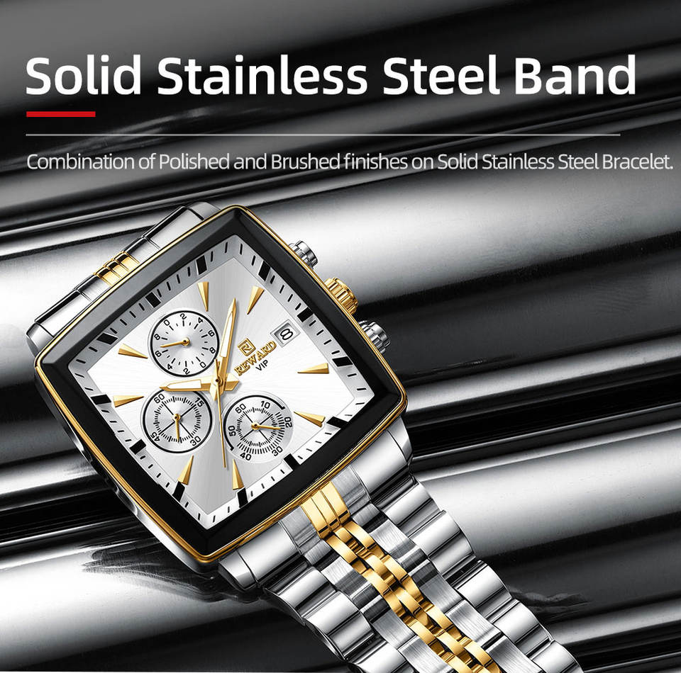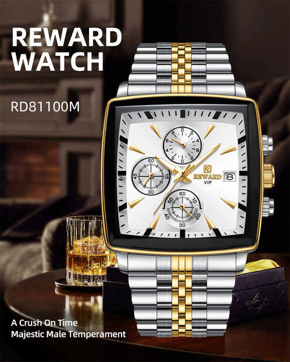 REWARD 81100M Fashion Steel Strip Quartz Men's Watch Multi Functional Luminous Waterproof Calendar Chronograph Luxury Men Watch