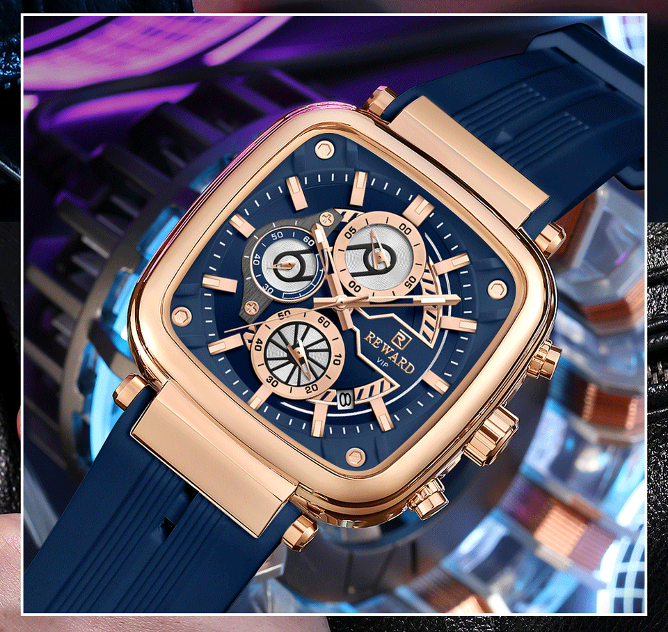 REWARD 831509M Luxury Sports Quartz Mens Watch Square Waterproof Calendar Chronograph Luminous Relogio Masculino Reloj Hombre