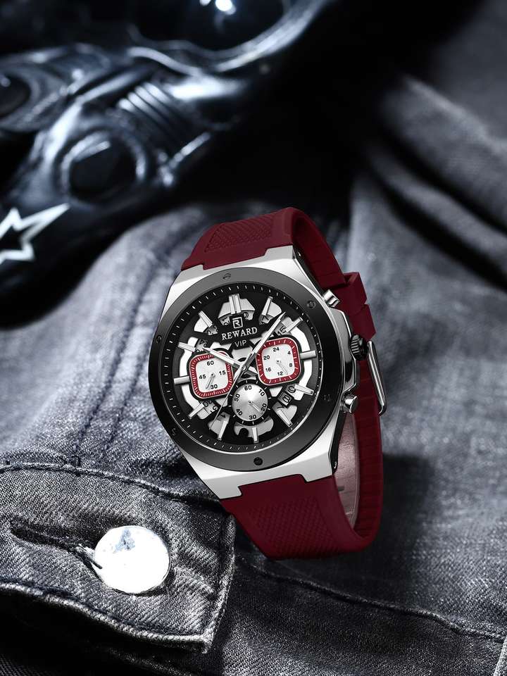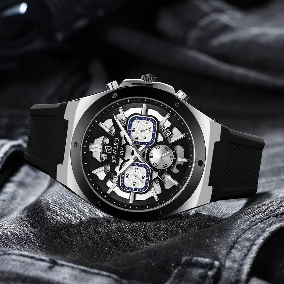 REWARD 832257 Fashion Men's Quartz Watch Multi Functional Automatic Date Chronograph Casual Silicone Strap Watches for Man