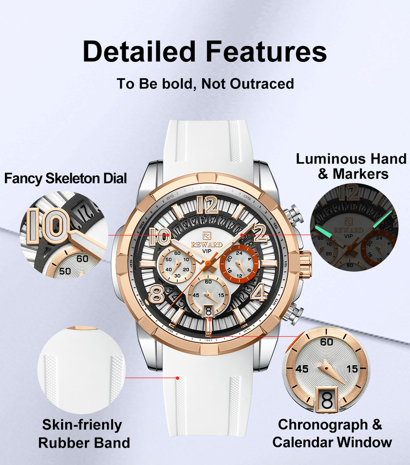 REWARD 832263M Quartz Sports Silicone Men's Watch with Waterproof Calendar Chronograph Luminous Watches for Men Montres Hommes