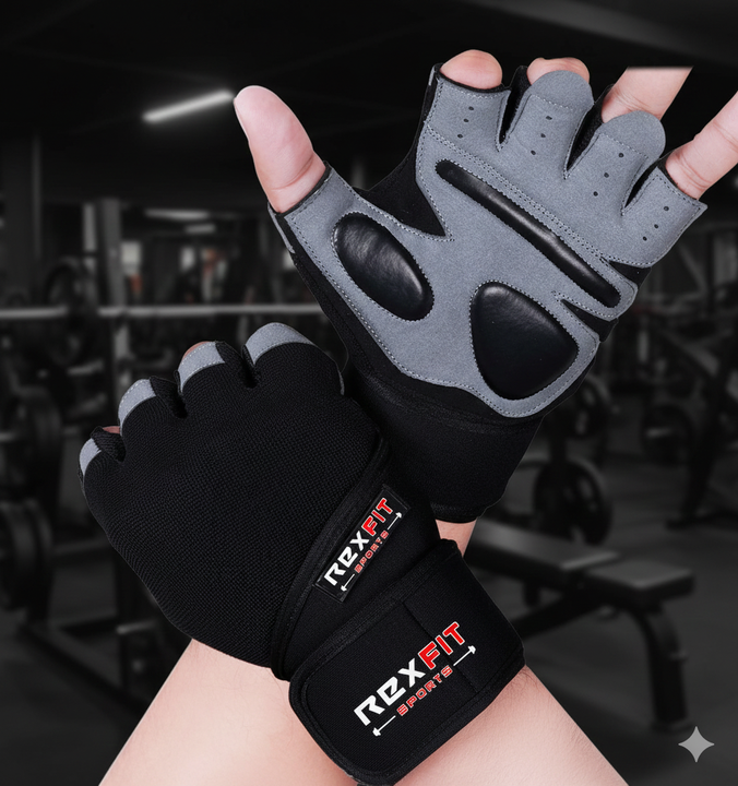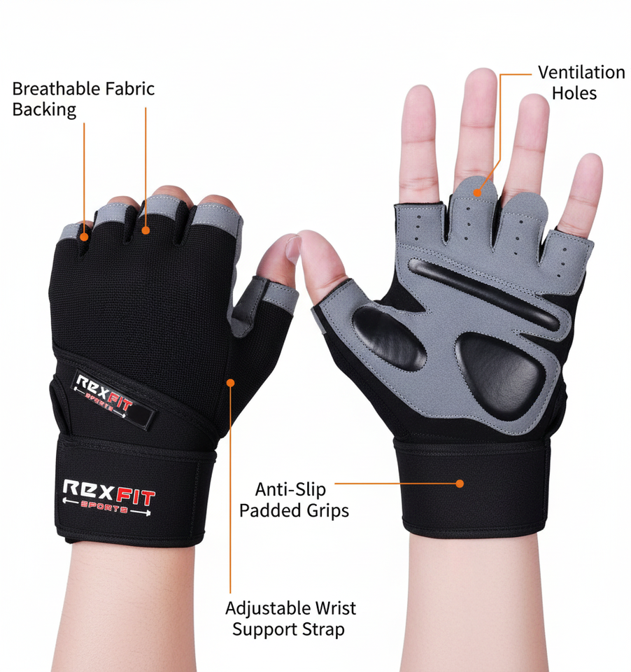 REXFIT SPORTS Weight Lifting Gym Gloves Wrist Wrap Support Gloves for Men & Women Workout Training & Fitness