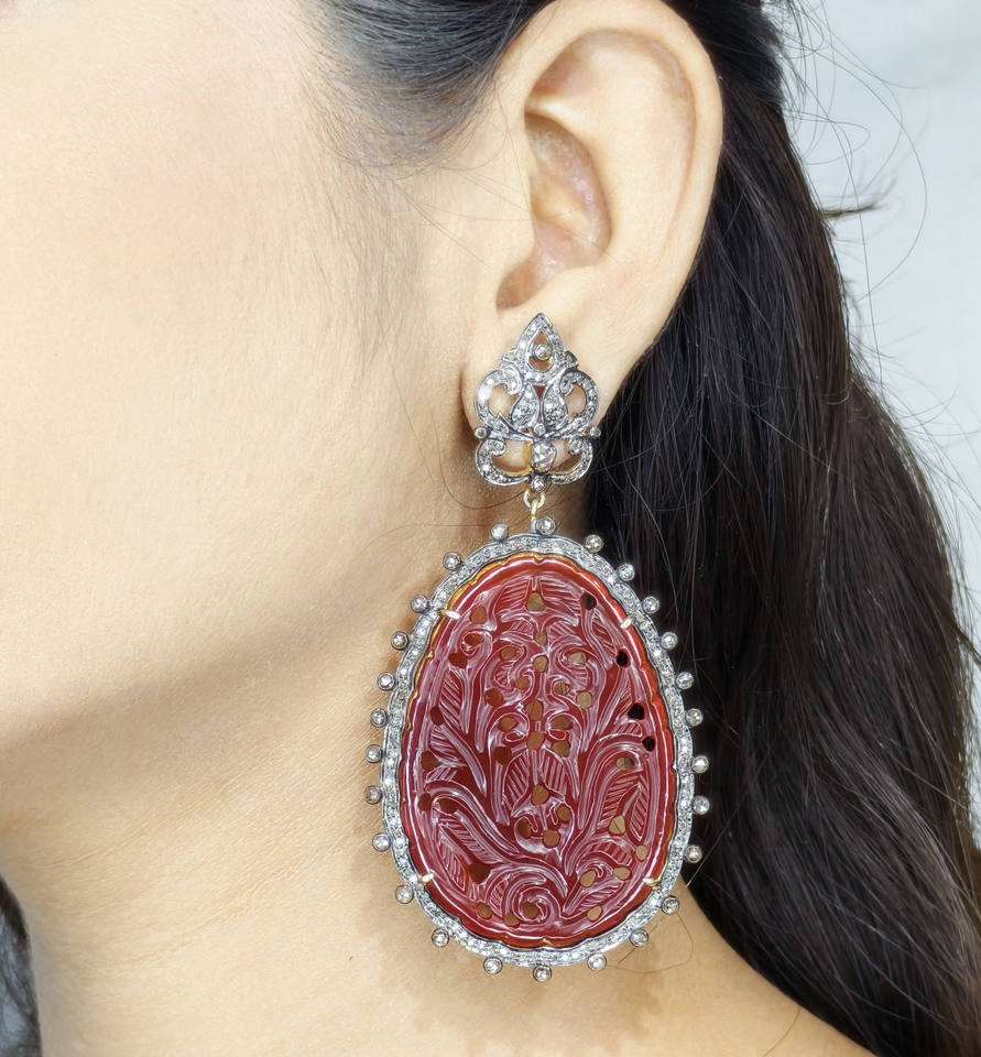 REYES Antique Style 14K Gold 925 Sterling Silver Natural Diamond Carbines Victorian Earrings For Women Expensive Jewelry
