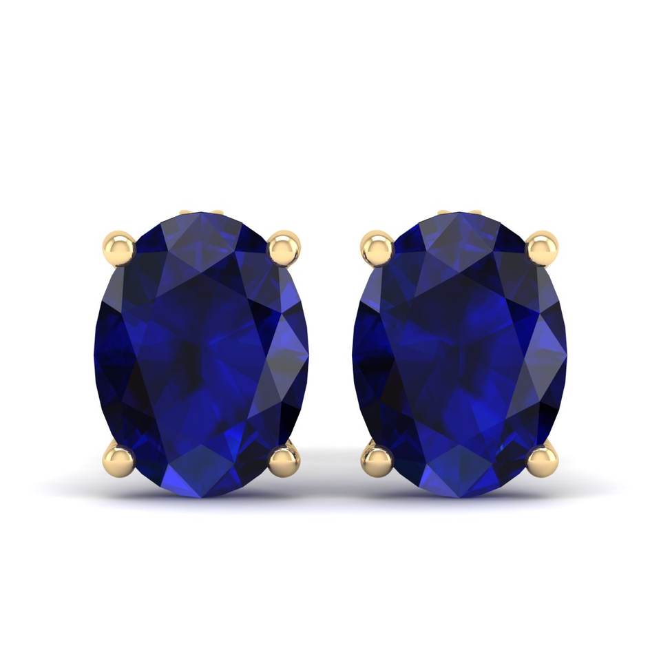 REYES Dainty Oval Cut 2.5 Carat Blue Sapphire Gemstone Earrings in 14K Solid Gold Moissanite Screw Back Stud Earrings For Women