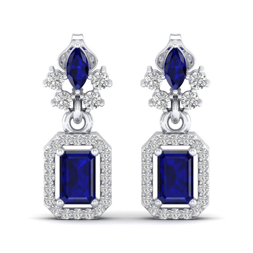 REYES Delicate 14K Rose Gold Blue Sapphire and Moissanite Halo Earrings Bride Wedding Accessories Elegant Dangle Drop Earrings
